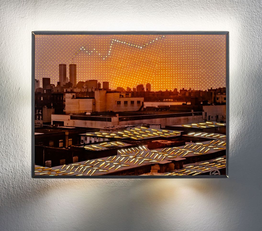 84. aukce, číslo katalogu 89 Vynikající a vizuálně velice silná práce pozoruhodného umělce Svatopluka Klimeše, jenž se před rokem 1989 zúčastnil mnoha zásadních výstavních projektů neoficiální umělecké scény, ukazuje jednu z dalších poloh jeho tvorby. Signifikantním je pro něj oheň, kterým nechává kreslit, opalovat, propalovat a dotvářet své práce. Spektrum výtvarných technik a postupů, jež ve své práci využívá, je široké. Tentokrát však před sebou máme fotografii, kterou pořídil během svého pobytu v New Yorku a která svým námětem předběhla historii a tragédii útoku na newyorská dvojčata. Jedná se o jednu z variant z cyklu Pohled na Brooklyn. Klimeš svými propalovanými vstupy a instalací práce ve spodně podsvíceném lightboxu přetváří panorama městských střech a domů v poetický okamžik s téměř pohádkovým nádechem. Získáno přímo z autorova ateliéru. Varianta práce byla prezentována na výstavě Česká fotografie 20. století (Galerie hlavního města Prahy, 2005, oddíl 17) či v Hradci Králové na výstavě Světla měst a noční chodci (Galerie moderního umění, 2008). Při konzultacích posouzeno PhDr. K. Srpem a PhDr. J. Machalickým.