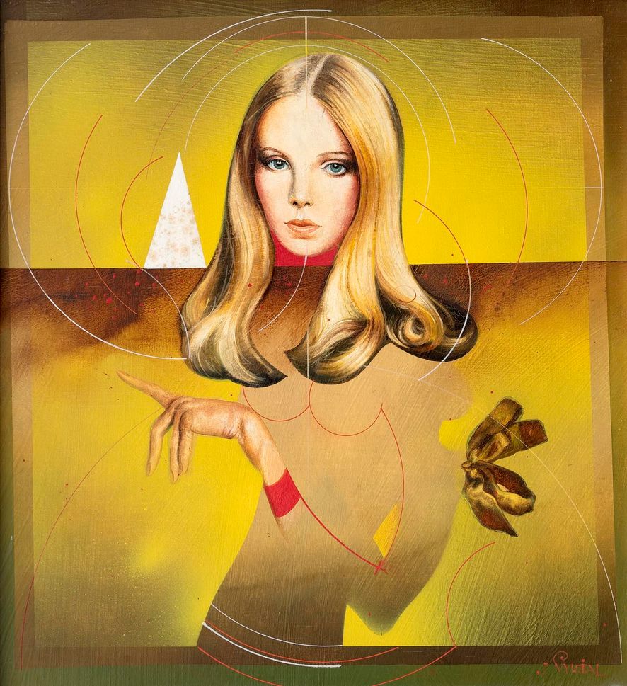 85. aukce, číslo katalogu 172 Vynikající ukázka skvěle prezentuje Vyleťalovu typicky propracovanou kompozici, důraz na detail a čistotu malířského projevu. Spadá do autorova vyzrálého období 80. let, jež bylo ovlivněno staromistrovskou precizní malbou a zároveň impulzy vycházejícími z filmové tvorby. Odvážná barevnost geometrizující snové krajiny uvádí do popředí obličej dívky, který jako by v obraze zvěčnil moment z dobové reklamy. Stylový účes i křehká tvář jsou symbolem mládí, nových trendů a modernosti. Při konzultacích posouzeno prof. J. Zeminou a PhDr. R. Michalovou, Ph.D. Přiložena odborná expertiza PhDr. J. Machalického.