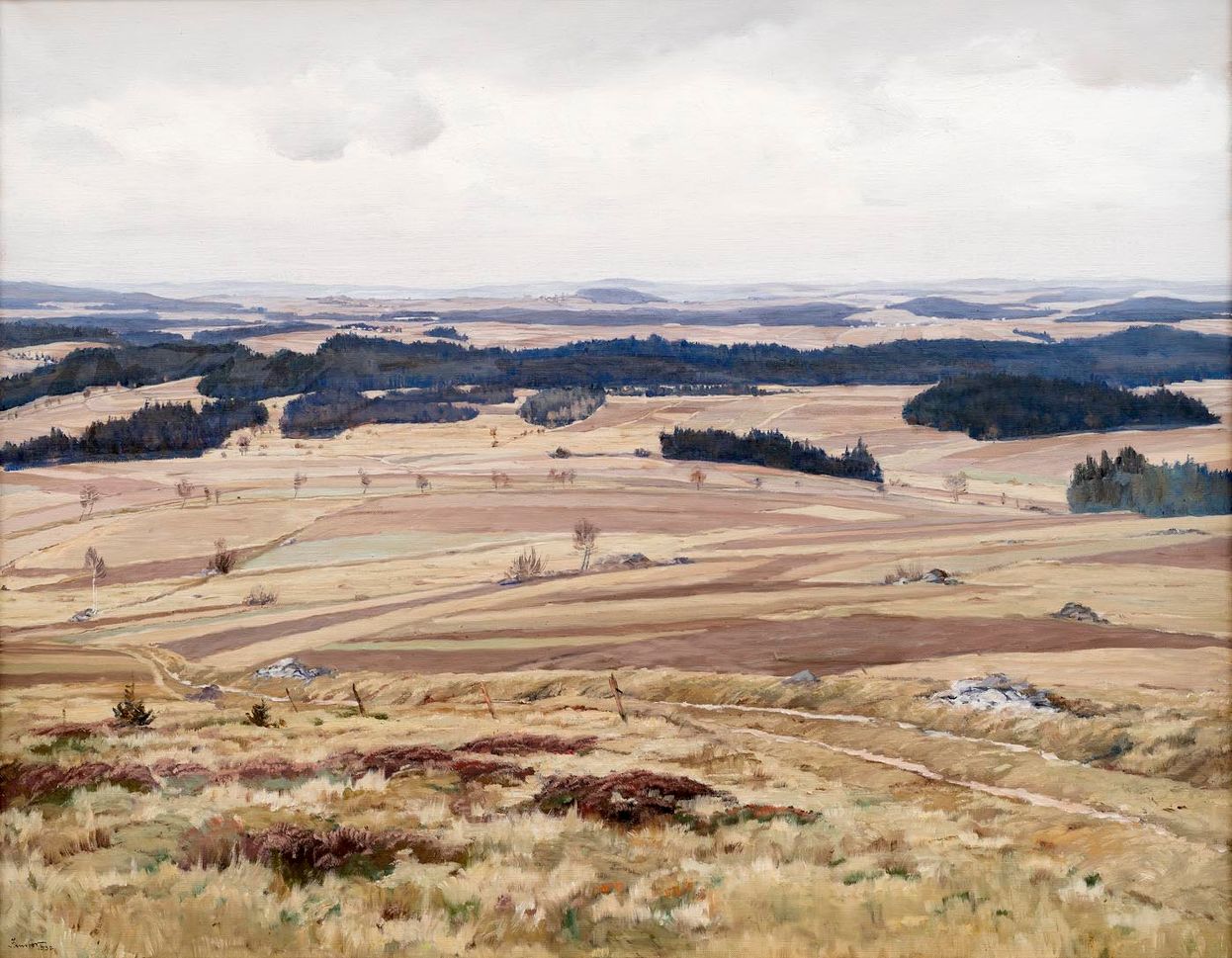85. aukce, číslo katalogu 203 Málokterý text týkající se Josefa Jambora, malíře a grafika, již zralého studenta pražské Akademie a výrazného solitéra stavěného někdy hlavním objektem svého zájmu do dvojice s Oldřichem Blažíčkem, vynechá jeho epiteton „malíře Vysočiny“. Témata totiž umělec čerpal, nepočítáme-li tedy díla ovlivněná jeho zahraničními cestami ve 20. letech, především na Českomoravské vrchovině. Inspirací mu byla hlavně krajina kolem vsi Blatiny nedaleko Nového Města na Moravě. Představované Jamborovo plátno Z Vysočiny je proto typickým příkladem autorovy tvorby 30. let a nese v sobě řadu nezaměnitelných prvků jeho výtvarného projevu. Kromě samotného mnohokrát opakovaného námětu liduprázdné, takřka panoramaticky pojaté krajiny s typickým dalekým horizontem je to i realistické, drobnopisné a precizní podání cest, přírodních detailů, travin, různorodých políček, lesíků a remízků. Literatura si u Jambora mj. všímá i schopnosti malovat vše, co „rychle mizí a ztrácí svůj půvab“ – půvab a pocit ztráty z dnes již sotva opakovatelného krajinného prospektu jsou bez pochyby předivem i tohoto obrazu. Při konzultacích posouzeno prof. J. Zeminou a Mgr. P. Kubíkem. Přiložena odborná expertiza Mgr. M. Dospěla, Ph.D.