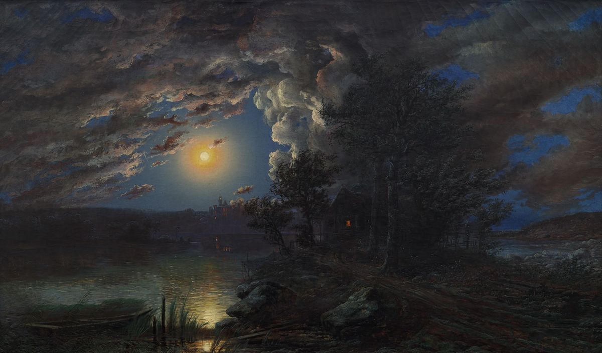 88. aukce, číslo katalogu 63 Malíř krajin, historických obrazů a žánrů usazený v Praze na Smíchově, Antonín Waldhauser, prošel ateliéry Christiana Rubena, Antonína Lhoty a Maximiliana Haushofera, později studoval i na vídeňské Akademii, a to vše, aby si našel osobitou cestu, jen málo odvozenou od svých učitelů. Byl též nadšeným vlastencem, což kromě účasti v pražském Sokole a krojových návrhů, které také vytvořil (v sokolském kroji dokonce akvarelem zvěčnil i sám sebe), dokazoval kupř. i aktivní podporou polského povstání roku 1863 a řadou dalších aktivit. Své obzory si rozšířil také zahraničními cestami do Francie – navštívil Paříž, Bretaň i další místa. Waldhauser s chutí zachycoval náladové scenérie a malebné motivy. Řadu obrazů koncipoval jako noční scenérie, dobově velmi oblíbené a považované za skutečný projev mistrovství, kde bylo možno prokázat umění kontrastu tmavších partií s těmi prozářenými – v českém prostředí byla nokturna dlouho považována za žánr pro tohoto autora zcela specifický. V jeho tvorbě došlo také k osobité modernizaci veduty hradů a zámků, což se, byť jen na pozadí v siluetě, projevuje i zde. Představované plátno nepochybně galerijního významu je jednou ze známých variant obrazu podobného rozměru, ale mnoha odlišných detailů, se zámkem Hluboká na horizontu, nacházejícího se dnes ve sbírkách Západočeské galerie v Plzni (V rákosí u Hluboké v Čechách, inv. č. O 954, vystaven již na pražské výroční výstavě roku 1875 s prodejní částkou značně vyšší, než u něj bylo v této době obvyklé) – okolo Hluboké Waldhauser maloval vícekrát, většinou však vytvářel mnohem komornější formáty. Nebylo tehdy neobvyklé, aby autor dílo, které sklidilo úspěch obzvláště na některé z výročních výstav, vytvořil kupř. na objednávku ještě jednou nebo ve variantě. Představované plátno je variantou podobného druhu, která ovšem svým technickým provedením plným brilantně ztvárněných detailů, formátem, osobitým a nezaměnitelným stylem, náladou i vyváženou světelnou režií patří k autorovým nesporným mistrovským dílům, jež se běžně na trhu s uměním neobjevují. Při konzultacích posouzeno PhDr. Š. Leubnerovou a Mgr. M. Dospělem, Ph.D. Přiložena odborná expertiza prof. R. Prahla, CSc.