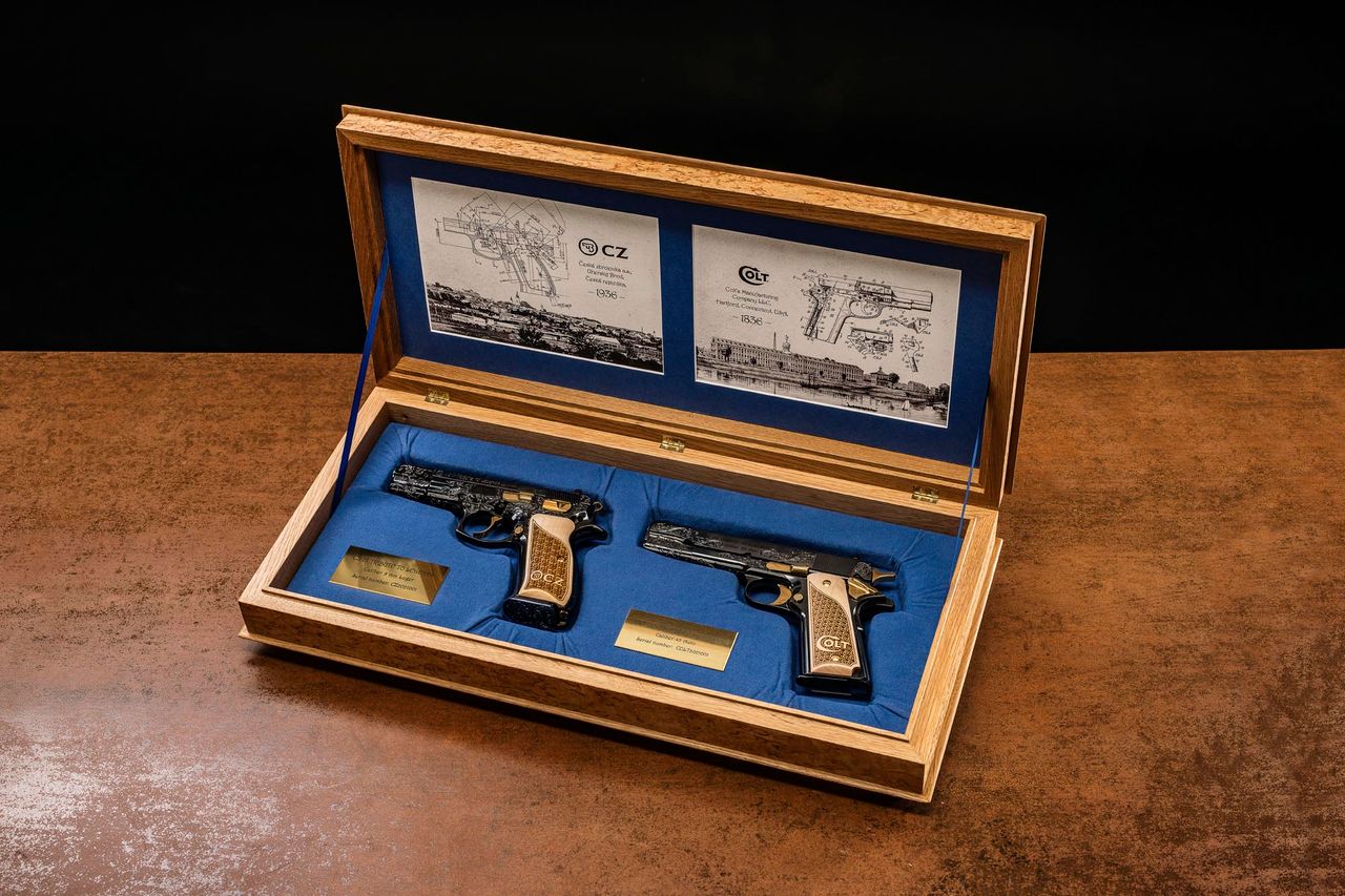 Vůbec první vyrobenou sadu (z celkového počtu padesáti) obsahující dvě legendární, bohatě zdobené pistole z limitované edice Pocta legendám (Tribute to Legends) věnuje Colt CZ Group do dobročinné aukce Galerie KODL. Touto edicí firma oslavuje loňské spojení dvou světově proslulých výrobců ručních palných zbraní – amerického Coltu a České zbrojovky. Akvizicí ikonické značky Colt v květnu 2021 se zrodila mimořádně silná mezinárodní skupina, která má ambici být světovým lídrem ve výrobě ručních palných zbraní. Jádrem holdingu Colt CZ Group jsou dvě proslulé značky: Colt, jehož továrna sídlí ve West Hartfordu ve státě Connecticut v USA, a Česká zbrojovka s výrobním závodem v Uherském Brodě. První z nich loni oslavila již 185. výročí svého založení, druhá je přesně o sto let mladší. Do unikátní edice Pocta legendám byl za každou značku vybrán ikonický model: americká pistole Colt 1911 a česká CZ 75. Colt 1911 je podle mnohých nejdokonalejší velkorážovou jednočinnou pistolí s jednořadovým zásobníkem, jaká kdy vznikla. O 64 let mladší CZ 75 byla jednou z prvních tzv. zázračných devítek – pistolí ráže 9 mm Luger s dvoučinným spoušťovým mechanismem a velkokapacitním zásobníkem – a dodnes zůstává jednou z nejúspěšnějších. Zdobení se již tradičně ujal respektovaný rytec René Ondra, pod jehož rukama se běžné sériové výrobky mění v unikátní umělecká díla vysoké hodnoty. Na amerických i českých pistolích proběhly stejné úpravy dle společného designu. Rámy a závěry jsou černěny do vysokého lesku. Střenky jsou vyrobeny z bílého javorového dřeva. Precizní ruční rytina na závěrech, rámech a v případě CZ 75 i na dnech zásobníků pracuje s motivy ornamentálních rozvilin a je pozoruhodná mj. tím, že potřebné šrafovací dláto si René Ondra musel speciálně pro tento účel vyrobit sám. Pro edici Pocta legendám je určena zvláštní řada výrobních čísel začínající COLT2021001, resp. CZ2021001. Zbraně jsou společně uloženy ve velké dvojkazetě zhotovené z kombinace javorového dřeva a kořenice břízy a vyložené modrým mikroplyšem. Víko kazety zdobí loga značek Colt a CZ, na vnitřní straně víka se nachází stylové pasparty připomínající dlouhé tradice obou zbrojovek. Každý set z edice Pocta legendám je dodáván se záručním listem a certifikátem originality. Celý výtěžek bude rozdělen mezi Vojenský fond solidarity, Nadaci policistů a hasičů a sbírkový účet Velvyslanectví Ukrajiny v ČR na podporu ukrajinské armády.