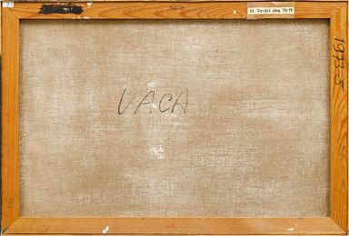 Abstraktní dílo Devátá vlna pochází z  palety akademického malíře, ilustrátora, grafika, typografa, scénografa, kostýmního návrháře a  člena uměleckého uskupení Trasa 54, Karla Vacy. Umělce, jenž sdílel osud s malíři, jejichž studia přerušila válka a jejichž kariérní rozlet ztížilo nelehké období po roce 1968. Z počátku lyricky kubizující forma projevu se kolem roku 1963 proměnila do bezpředmětné tvorby. Hlavní slovo ve Vacových obrazech získala barva a její rytmizace, k  čemuž navádějí i  umělcovy názvy, často odvozené z hudební teorie (Melodie, Blues, Divertimento). Devátá vlna pochází z  nelehkého období normalizačních sedmdesátých let. Samotný pojem vychází z námořní legendy, že devátá vlna je ta nejsilnější a přináší nejničivější dopady, což můžeme považovat za metaforický komentář k období silného společenského útlaku. Jedná se o barevně velice sugestivně vyvedenou kompozici zvedající se modré vlny, konturované v oblasti zlomu výrazně červenou barvou, jež na vrcholu přechází do dramatického kontrastu černého stínu a ozářeného bílého hřbetu, a o charakteristickou ukázku tvorby Karla Vacy ze zralého období sedmdesátých 15 | Jan Knap (* 1949) Bez názvu olej na plátně, 2006, sign. PD a na rubu, 40 × 51 cm, rám Jan Knap, rodák z Chrudimi a úspěšný žák Gerharda Richtera, proslul především na zahraniční scéně, v posledních letech však 14 | let, kdy autor došel k vypracovanému osobnímu stylu. Dílo je reprodukováno v katalogu výstavy Karla Vacy v Galerii výtvarného umění v Náchodě (J. Kapusta ml. a kol.: Karel Vaca, Náchod: Galerie výtvarného umění, 2002, str. 24). Významná pražská sbírka. Při konzultacích posouzeno prof. J. Zeminou a PhDr. R. Michalovou, Ph.D. Přiložena odborná expertiza PhDr. J. Machalického.