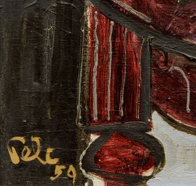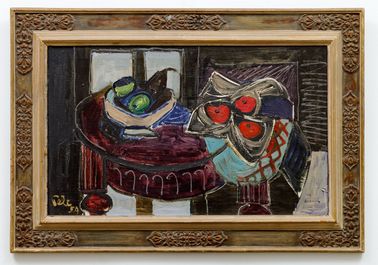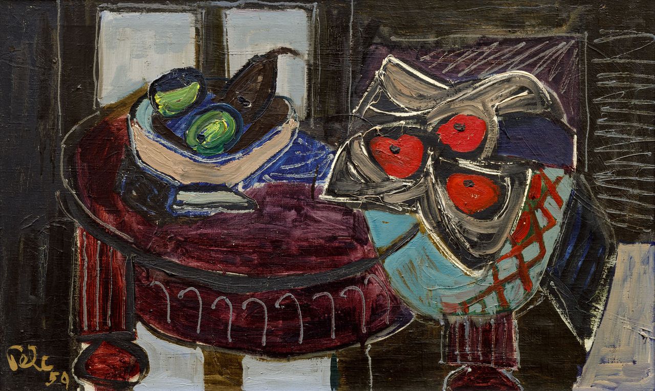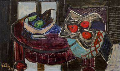 Suverénně řešené zátiší příznačným způsobem demonstruje výtvarné schopnosti břitkého karikaturisty, úspěšného malíře, ilustrátora a v neposlední řadě světoběžníka Antonína Pelce. Během druhé světové války Pelc uprchl z Francie přes Maroko a Martinik do USA, aby se po válce vrátil zpět do Československa coby uznávaný umělec a profesor na vysoké škole a navázal na postupy předválečné malby, vycházející z kubistických a fauvistických tradic. Jako tenká linka sjednocuje jeho výtvarnou dráhu lyrický kubismus, který posiloval jeho mimetickou vazbu na realitu, a dovolil mu rozvíjet možnosti hry s texturami a formami v kompozici. To ostatně dokládá i předložená, velmi vyspělá práce, v které nás Pelc na jednu stranu uvádí do temnějšími barvami sevřeného interiéru, na druhou stranu v jednotlivých předmětech využívá i zářivých kombinací barev, a plátno tak získává na lehkosti a koloristické živosti. Větší formát umožnil naplno vyniknout rychlému štětcovému rukopisu, dodávajícímu dílu značnou výrazovou expresivitu, a obrysové linky ne náhodou odkazují na přímý vliv tvorby Emila Filly, se kterou byl Pelc obeznámen nejen z meziválečných členských výstav Mánesa. Při konzultacích posouzeno PhDr. K. Srpem a doc. T. Winterem, Ph.D. Přiložena odborná expertiza PhDr. J. Machalického.