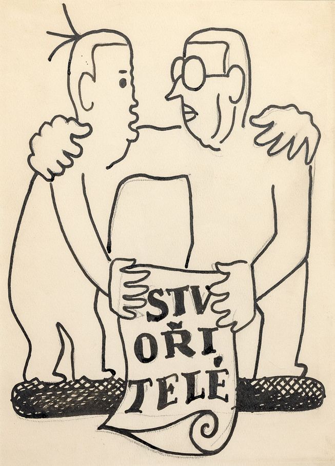 Vtipně podaná kresba je vynikající ukázkou Čapkova charakteristického výtvarného stylu zjednodušených forem. Tento oblíbený umělec, jehož tvorbu si mnohé generace spojují zejména s vizualitou dětství díky ilustrovaným knihám Povídaní o pejskovi a kočičce a Dášeňka čili život štěněte, dokázal svá díla prodchnout optimistickou atmosférou a vřelým lidovým výrazem, jak ostatně dokládá i tato práce. S nadsázkou vytvořené dílo zobrazuje bratry Čapky, malíře Josefa a spisovatele Karla, s více než výstižným a zároveň lehce ironickým titulkem Stvořitelé. Kresba byla publikována v periodiku Rozpravy Aventina, ročník 2, 1926–1927. Původ z kvalitní prvorepublikové sbírky. Při konzultacích posouzeno PhDr. J. Machalickým a PhDr. P. Pečinkovou, CSc.