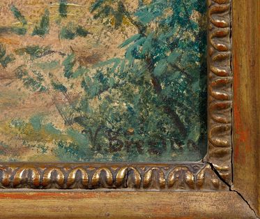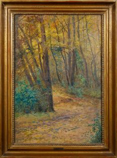 Vyvolávací cena: 40 000 Kč Dosažená cena: 90 000 KčCesta malířského zrání mladého Václava Březiny vedla přes ateliéry Františka Čermáka, Antonína Lhoty a Jana Václava Kautského, ovšem určujícím obdobím byla poslední dvě léta studia strávená na konci devadesátých let u Julia Mařáka. Toho následoval ve svém výtvarném projevu s větší oddaností než většina jeho spolužáků – spolupráce učitele a žáka při výzdobě Národního muzea v Praze a uložení Březinových ostatků do Mařákova hrobu tuto uměleckou i fatální blízkost ještě prohloubily. Po vzoru Julia Mařáka byl obzvláště zběhlý v zachycení lesních interiérů, tišin a zákoutí. Při pohledu na představované dílo, jeho rukopis, strukturu, světlo, kladení jednotlivých barevných skvrn a kolorit samotný lze také uvažovat o autorově znalosti postimpresionistické tradice a jejích principů. Pozorování tohoto obrazu nabízí vnímavému divákovi možnost přenést se kamsi do klidu lesa a při troše představivosti ucítit vůni tlejícího listí a závan větru na tváři. Březinův Lesní interiér tak není, navzdory velmi přesné a věrné kompozici, pouhou fotografií, ale spíše snahou o předání prožitku z konkrétního místa hodného malířova štětce. Při konzultacích posouzeno prof. J. Zeminou a Mgr. M. Dospělem, Ph.D.