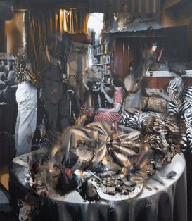 Vyvolávací cena: 200 000 KčDíloThe Winner Takes It Allpředstavuje Mrázův současný vyzrálý přístup k demontáži amerického snu prostřednictvím vizuálního přepisování, v níž se reklamní idyla padesátých let střetává s apokalyptickými vizemi současnosti. Autor zde dovršuje svou charakteristickou kombinaci šablonové techniky s gestickou malbou, čímž vytváří vícevrstvý narativ o pádu konzumní společnosti. Propálený, korodovaný povrch plátna funguje jako metafora časového posunu – rodinná harmonie z magazínu Life se rozpadá pod tíhou ekologické a morální krize přítomnosti. Zátiší v popředí, komponované z fragmentárních objektů zatížených symbolickým významem, odkazuje k tradici vanitas, přičemž Mráz aktualizuje memento mori pro éru klimatické změny a informačního přesycení. Asymetrická kompozice, kde se figurální prvky rozpadají do abstraktních skvrn, zrcadlí umělcovu zkušenost s částečnou poruchou barvocitu – svět redukovaný na odstíny šedi se stává autentickým obrazem současné nejistoty. V kontextu autorovy tvorby roku 2025 jde o pokračování série „propálených“ scén, kde se streetartová estetika transformuje do sofistikovaného komentáře k současnému geopolitickému napětí. Název odkazující na píseň skupiny ABBA dodává dílu ironický rozměr – v době všeobecné krize se „vítěz, který bere vše“ ukazuje jako prázdná utopie. Pochází přímo z ateliéru umělce.Z kladívkové ceny autor věnuje 20 % na podporu neziskové organizace Post Bellum.