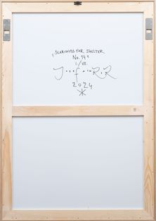 Fotogram Josefa Achrera je příkladem malířova obráceného přístupu k fotografii. Nevyužívá ji totiž jako prostředek k dokumentaci reality, ale podmaňuje si ji malířským gestem a posouvá ji do sféry abstrakce. V nadživotní velikosti vznikají kompozice, které evokují noční krajiny se snovou atmosférou. V díle Searching for shelter No. 14 se protínají ostré geometrické linie s éterickými obláčky světla a kontrastem dvou kruhů, bílého a černého, připomínajících nebeská tělesa. Jejich vzájemné napětí podtrhuje existenciální téma hledání útočiště, skrytého místa bezpečí v nehostinném prostředí. Achrer zde rozvíjí zkušenost s prací se světlem, kterou si osvojil už ve svých malířských cyklech. Světlo se stává základním stavebním prvkem, neboť nejenomže modeluje prostor, ale zároveň odhaluje jeho plošnost. Fotogram není pro Achrera únikem od malby, ale naopak cestou, jak ji přenést do jiného média. Jedinečnost a neopakovatelnost procesu, vyžadující práci ve fotokomoře s obří skleněnou deskou, mu umožňuje vytvořit jedinečné dílo na pomezí malby a fotografie. Nabourává tím tradiční očekávání spojená s fotografickým obrazem, že jeho předloha musela někdy existovat. Achrerův fotogram je totiž obrazem, který mohl být namalován, ale nemohl být nikdy vyfotografován. Dílo pochází přímo z ateliéru umělce. Z kladívkové ceny autor věnuje 100 % na podporu neziskové organizace Centrum Paraple.