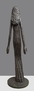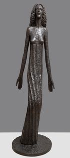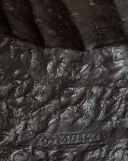 Zoubkova bronzová Libuše z roku 2002 představuje jedinečné propojení českého mytologického dědictví s autorovou charakteristickou poetikou protáhlých figur, inspirovanou antikou a tvorbou Alberta Giacomettiho. Socha vznikla jako součást triptychu Krokových dcer, v němž Zoubek ztělesnil postavy z nejstarších vrstev české mytologie – moudrého rodu, jenž podle pověsti předurčil osud českého národa včetně Libuše, zakladatelky Prahy. Monumentální výška a výrazně vytažené proporce figury evokují archaické božstvo, přičemž sochař pracoval s kontrastem mezi vertikalitou postavy a jejím pevným zakotvením v kruhovém podstavci. Původní vznik této kompozice sahá do roku 1998, kdy Zoubek vytvořil cementové verze později převedené do trvalého bronzového materiálu, což je proces, který reflektuje autorovu dlouhodobou praxi zkoumání různých médií a povrchových úprav. Dílo vzniklo v době, kdy se Zoubek již etabloval jako představitel české umělecké scény po roce 1989, a triptych Krokových dcer tak dokumentuje jeho návrat k národním tématům po desetiletích politicky podmíněných omezení. Libuše svou strohostí a monumentalitou zachycuje autoritativní sílu mytické panovnice, zatímco jemná modelace povrchu prozrazuje sochařovu dlouholetou zkušenost s materiálem a jeho osobitou schopnost vytvářet psychologicky působivé portréty historických postav. Dílo pochází z kvalitní slovenské sbírky. Majitel dílo získal přímo od autora, jehož certifikát je přiložen. Při konzultacích posouzeno Nadačním fondem Kmentová Zoubek a PhDr. P. Bregantovou, autorovou dcerou, jejíž certifikát je přiložen.