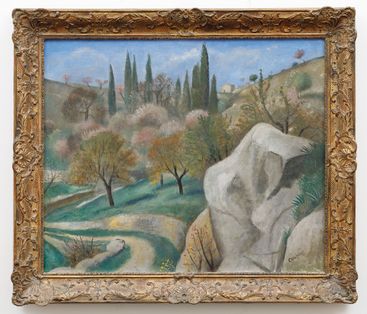 Vyvolávací cena: 400 000 KčKubínovo plátno vede diváka cestou obepínající kopeček, na jehož vrcholu se vypíná vesnice Simiane-la-Rotonde. Touto cestou vinoucí se od nevelkého skalního masivu podél místního hřbitova k simianské rotundě a dále ke kapli Notre-Dame-de-Pitié ukryté mezi olivovníky za vesnicí, se malíř pravidelně procházel během svých pobytů v Provence ve dvacátých a třicátých letech. Slavnou středověkou rotundu zde záměrně ponechal mimo obrazový rám nepatrně vlevo, a zvolil tak intimnější výřez krajiny než na rozsáhlejším plátně z roku 1934, dnes uloženém v Národní galerii v Praze (Jaro v Simiane, 1934, inv. č. O 3863), na němž šířeji pojatý pohled na tentýž motiv zahrnuje i rotundu samotnou, což mu zde umožnilo soustředit se plně na poetickou sílu rozkvetlé přírody. Monumentální kameny v popředí, komponované s důrazem na strukturální logiku celku, vytvářejí architektonický rámec pro jemnou lyriku rozkvétajících mandloní, olivovníků a štíhlých cypřišů v pozadí. Světelná jednotnost celé kompozice proměňuje pozorovanou realitu v poetickou vizi. Pastelová paleta a prosvětlená barevnost odrážejí umělcův intimní vztah k adoptované krajině, jež se mu stala zdrojem duchovní obnovy po osobních tragédiích dvacátých let. Liduprázdnost scenérie souvisí s Kubínovým rozhodnutím zřeknout se figur v krajinomalbě a dosáhnout tak meditativního klidu čisté přírodní podívané. Pravidelné rozložení světla po celé ploše plátna funguje jako sjednocující princip, který harmonizuje všechny prvky krajiny v organickou celistvost. Jemnost barevných přechodů a strukturovaná kompozice odhalují malířovu schopnost transformovat konkrétní místo v archetypální obraz středomořské Arkádie. Při konzultacích posouzeno prof. J. Zeminou a PhDr. K. Srpem. Přiložena odborná expertiza PhDr. R. Michalové, Ph.D. (cit.:„[…] V předloženém díle ‚Jaro v Simiane‘ Coubine na obrazové ploše vytvořil celistvý mikrokosmos mocného lyrického kouzla a velké komplexnosti pohledu. […] Coubine zde typicky ztvárnil nejmilovanější krajinu v okamžiku, kdy je v přírodě všechno nehybné a kdy se člověk může těšit její prostou, avšak současně bohatou krásou, jež odhaluje delikátní krásy nadcházejícího provensálského jara. […]“).