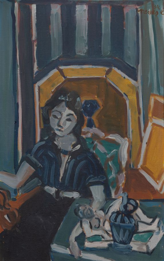 Vyvolávací cena: 180 000 KčObrazHouslistkavznikl v klíčovém období Nemesova studia na pražské Akademii výtvarného umění u Williho Nowaka, kdy se mladý umělec intenzivně potýkal s odkazem kubismu a fauvismu a hledal vlastní výrazové prostředky. Vyobrazená scéna dýchá klidnou domácí atmosférou. Dívka odpočívá v křesle u krbu s houslemi připravenými ke hře. Ve své tiché melancholii jako by splynula s místností – snad uměleckým ateliérem, jak naznačují obrazy opřené o zeď v pozadí. Paži má opřenou o stolek zdobený drobnou skulpturou a konvičkou s horkým nápojem. Celý výjev tvoří mozaika barevných ploch – modré a tyrkysové tóny zde kontrastují s okrovými prvky pozadí, přičemž jednotlivé plochy od sebe oddělují výrazné bílé linie. Tato malířská technika prozrazuje Nemesův obdiv k práci Chaima Soutina, ale také Henriho Matisse a dalších představitelů pařížské školy, s níž se seznámil během stipendijního pobytu v roce 1933. Způsob, jakým umělec zacházel s perspektivou a prostorovou konstrukcí, odkazuje k jeho tehdejším experimentům s automatickou kresbou a zájmu o „primitivní“ formy výrazu. Dílo tak dokumentuje Nemesovu snahu překonat pouhé napodobování kubistických vzorů a vytvořit osobitý syntetický jazyk, který by spojoval konstrukci s psychologickým obsahem. V kontextu jeho následného vývoje představuje tato práce důležitý mezník na cestě k pozdějšímu surrealistickému období. Obraz zároveň zachycuje atmosféru pražské meziválečné avantgardy, kdy se mladí umělci pokoušeli o originální interpretaci evropského modernismu. Dílo pochází z kvalitní západočeské prvorepublikové sbírky. Při konzultacích posouzeno prof. J. Zeminou a PhDr. R. Michalovou, Ph.D. Přiložena odborná expertiza Ing. M. Hodoše (cit.:„[…] Obraz vznikol v roku 1934, keď namaľoval aj o niečo väčšiu variantu ‚Ženy za piánom‘ […]. Obe diela sú namaľované v tmavých, tlmených farbách a s takmer rovnakým tapetovým pozadím. Predstavujú osobitne stvárnený vplyv postimpresionistického Matissa, Cézanna a japonských tlačí, keďže v roku 1933 boli spolu s J. Bauernfreundom na študijnom pobyte v Paríži, ktorý ich výrazne umelecky ovplyvnil. […]“).