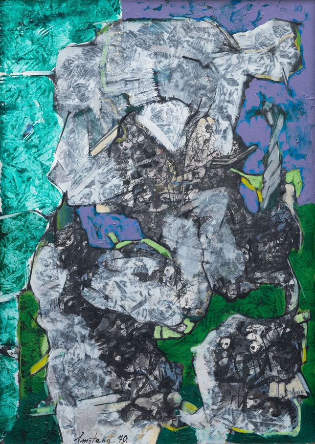 Vyvolávací cena: 70 000 KčDynamická kompozice Jana Smetany pochází z počátku sedmdesátých let, kdy malíř již opustil poválečný figuralismus a inspiraci plenérovým krajinářstvím a přešel k novému výtvarnému výrazu spojenému s lyrickou abstrakcí. Výjev zobrazuje jakousi podvědomou krajinu, jejíž vrstvení a rytmus připomínají paměť země jako otisk času. Silným inspiračním zdrojem se pro Smetanovu tvorbu stala cesta do Alžírska se zastávkou v Paříži, kterou podnikl roku 1967. Navštívil zde výstavy velkých jmen moderního umění, jako byli Pablo Picasso, Pierre Bonnard, Georges Braque, Henri Matisse, Vasilij Kandinskij, Marc Chagall, Antoni Tapiès či Josef Šíma. Z ryze praktických záležitostí jej zaujala adjustace obrazů Maxe Ernsta do kovových rámů, které začal Smetana od té doby používat. Ernstova tvorba, zejména jeho frotáže, se také nezaměnitelně propsala do strukturálních barevných ploch jeho obrazů. Scéna tak metaforicky vyvolává dojem fosilizovaných krajin a dávných geologických vrstev, v nichž autor hledal nový malířský jazyk, který se zabývá vizualizací paměti a přírody. Dílo tak představuje nikoliv realistickou podobu, nýbrž archetypální otisk. Práce je reprodukována v autorově monografii (E. Neumannová: Jan Smetana, Praha 2024, obr. str. 271) a je označena soupisovým číslem M 278. Pochází z autorovy pozůstalosti. Při konzultacích posouzeno prof. J. Zeminou a PhDr. E. Neumannovou.