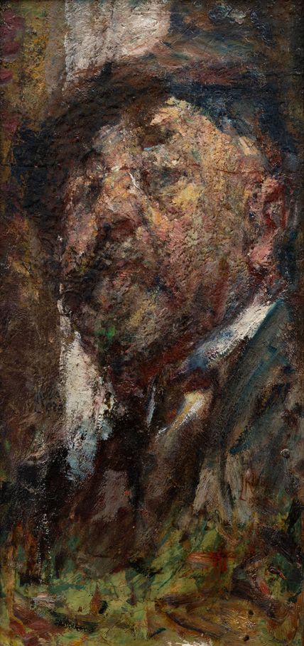 Vyvolávací cena: 60 000 KčTento komorní obrazový formát v sobě zpřítomňuje veškeré typické výtvarné fazety a talent Ludvíka Kuby, jenž byl nejen malířem, ale i etnografem, varhaníkem a osobou v pravém smyslu renesanční. Potěšit se tu můžeme jeho celoživotně oblíbeným tématem, vlastní podobiznou, jejíž varianty se jako červená nit proplétají takřka celým jeho známým dílem. Charakteristický je i samotný Kubův štětcový rukopis, jenž vypovídá o tom, že své obrazy doslova hnětl olejovou pastou, a to s vervou, energií a mužnou silou. Stále, i ve zralém věku, vycházel ze svého mnichovského školení ve slovutném soukromém ateliéru Antona Ažbeho – ten předal řadě svých žáků právě tento neakademický a živelný výraz, s nímž souvisí i barevná škála vycházející ze zemitosti barokní tradice, a obohacuje ji o okrové, cihlové a zelené valéry, tolik typické pro řadu umělců především na přelomu století. Podstatnou je tu i práce se světlem, jež tu prudce ozařuje umělcovu tvář a impresionistickým způsobem oživuje obrazovou plochu jemným vnitřním vlněním. Zmíněný barokní princip tu vyvstává i prostřednictvím odkazů na tvorbu nizozemského malíře Rembrandta van Rijn, taktéž obsedantně neúnavného zpodobitele vlastní tváře. Při konzultacích posouzeno prof. J. Zeminou a Mgr. M. Dospělem, Ph.D.