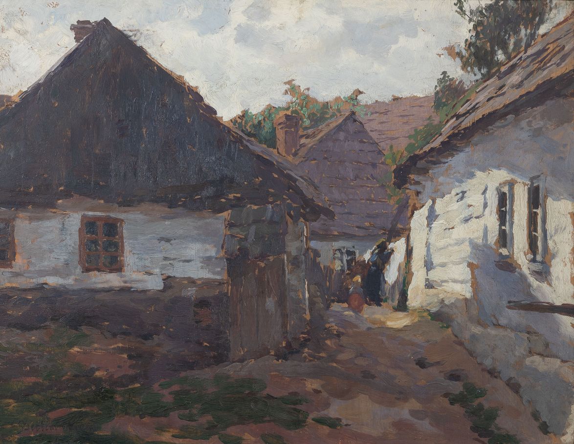 Vyvolávací cena: 800 000 KčToto osobitě zachycené vesnické zákoutí, jemuž dominují zemité odstíny kontrastující se zářivou bělobou, prezentuje svého autora ve všech ohledech v nejlepším světle. Namalován je tu Slavíčkem opakovaně variovaný venkovský motiv, jímž se výtvarně hlásí ke skupině děl z období 1902–1904, tedy k době pobytu v Hostišově a první návštěvy Kameniček. Betlém v Hlinsku a jeho neopakovatelná atmosféra tvořená architekturou lidových roubenek má své kořeny již v polovině 18. století v souvislosti s hrnčířskou řemeslnou činností a dnes se jedná o památkově chráněnou oblast. Autor zde maximálně rozvinul svůj spontánní rukopis, který není primárně realistický, přesto nepostrádá věrohodnosti, a to obzvláště vzhledem k živosti, se kterou dokázal vyjádřit různorodost povrchů a materiálů.
