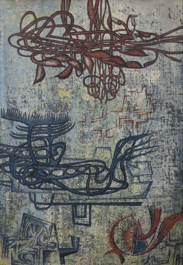 Vyvolávací cena: 80 000 KčObraz z cykluMechanické fantomyz pozdního tvůrčího období Václava Tikala, vytvořený v roce 1965, představuje charakteristický projev jeho imaginativní tvorby ovlivněné surrealismem, Skupinou Ra, novou figurací i lyrickou abstrakcí. Na temně laděném, záměrně strukturovaném pozadí vystupují dynamické, kaligraficky působící linie, které se splétají do organických a geometrických forem. Tikal zde mistrně kombinuje strohou linearitu s expresivní gestičností, čímž vytváří napětí mezi technickou precizností a imaginárními motivy. Kompozice působí jako vizuální záznam podvědomých struktur. Evokuje technické nákresy, mapy neznámých krajin či labyrint, zároveň však zůstává otevřená divákově interpretaci. Typická je i autorova práce s kontrastem mezi tmavými liniemi a světlejší, téměř monochromní plochou pozadí, která propůjčuje obrazu snovou, až kosmickou atmosféru.