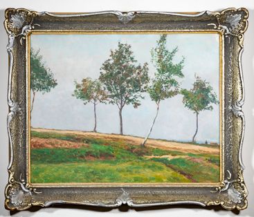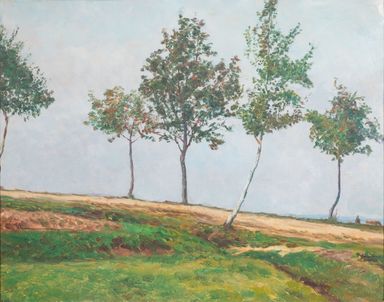 Vyvolávací cena: 50 000 KčStyl, rukopis, tematika i celkové provedení tohoto Kavánova obrazu vypovídají o zralé fázi umělcovy bohaté tvůrčí dráhy, která byla vždy úzce spjata s místem jeho aktuálního působení. V době, kdy představovaný olej vznikl, byl už Kaván dlouhodobě usazen ve Vítanově u Hlinska, který se pro něj stal studnicí inspirace s určitými předěly již od počátku století. Autor si vždy dokázal vybrat takový úhel pohledu, kterému dominovala především příroda, v jejíchž liniích, barvách i atmosférických proměnách osobitě nalézal vnitřní poetiku daného místa. Téma aleje se stromy s úzkými kmínky a červenými důrazy projasňujícími stromoví pro něj bylo taktéž velmi přitažlivé a vracel se k němu v řadě obměn. Naturální zemitost cesty i tíživé ocelově zbarvené nebe zároveň přináší silný vizuální zážitek. Určitou rurální harmonii člověka s přírodou zdůrazňuje drobná postava a kravka v pravé dolní části obrazové plochy. Dílo pochází z kvalitní moravské sbírky. Při konzultacích posouzeno prof. J. Zeminou a Mgr. M. Dospělem, Ph.D.