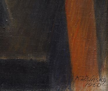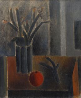Karel Těšínský patří mezi ty umělce, kteří až do nedávné doby stáli pohříchu mimo pozornost širší veřejnosti a odborných kruhů – a to navzdory tomu, že aktivně tvořil po více než půl století a přišel s osobitým a nezaměnitelným stylem. Řadil se k silné generaci výtvarníků, jejichž uvažování stálo v opozici vůči oficiálním tendencím. Studium absolvoval nejprve mezi lety 1948–1951 na Vysoké škole uměleckoprůmyslové v Praze u Františka Muziky, Jana Baucha a Emila Filly. Následně čtyři roky strávil na Akademii výtvarných umění v Praze v krajinářském ateliéru Otakara Nejedlého – vzdělání se mu tedy dostalo v našem kontextu nejkvalitnějšího. Představované zátiší s vázou, květinou a jablkem lze označit za vzácný artefakt svědčící o rané fázi autorova uměleckého vývoje, ve které už ovšem lze rozpoznat nejen možné inspirační zdroje, ale i jeho pozdější směřování. Křehkým malířským rukopisem a abstraktní symbolikou zde navázal na avantgardní meziválečné proudy a zvolené archetypální téma zachytil v odhmotněné, až básnivé kompozici. Dílo tohoto námětu a z této doby se od Karla Těšínského dosud na trhu s uměním neobjevilo a jedná se tak o výjimečnou, možná dokonce neopakovatelnou sběratelskou příležitost. Při konzultacích posouzeno Mgr. M. Dospělem, Ph.D., a PhDr. J. Machalickým.