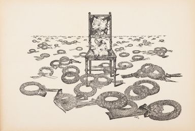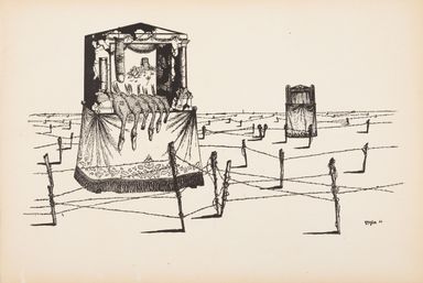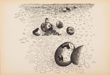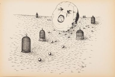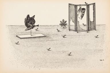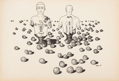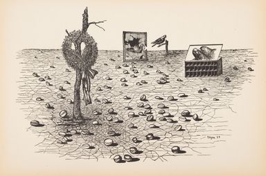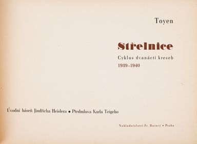 Vyvolávací cena: 100 000 KčCyklusStřelniceod Toyen zahrnuje soubor dvanácti zinkografií, který vznikl v dramatických letech na prahu druhé světové války. V roce 1940 jej vydalo pražské nakladatelství Fr. Borový s předmluvou Karla Teiga a úvodní básní Jindřicha Heislera. Toyen v tomto souboru prací opustila dosavadní snivou poezii surrealismu a přiklonila se k mnohem drsnější, existenciálně vypjaté obraznosti. Vizuální metafory, mezi něž patří rozbité hlavy, zvířecí torza, prázdné krajiny plné klecí a bizarních objektů, se proměňují v mrazivé alegorie války, ohrožení a úzkosti. Přítomné jsou i deformované a zneklidňující motivy dětství a hry, čímž práce zdůrazňuje kontrast mezi nevinností a násilím. Toyen vytvořila vizuální paralelu k válečným hrozbám, které se proměňovaly v každodenní skutečnost, a její imaginativní kresby se staly manifestem vzdoru a citlivosti zároveň.Střelniceje považována za jedno z nejzásadnějších děl českého surrealismu, protože v sobě spojuje výtvarnou invenci s ostrou společenskou výpovědí. Dílo bylo mnohokrát vystavováno. Při konzultacích posouzeno prof. J. Zeminou a PhDr. K. Srpem. Přiložena odborná expertiza Mgr. K. Guth-Vladaj.