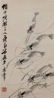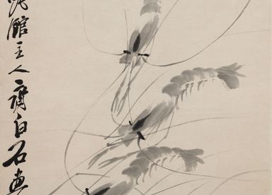 A master of free ink painting, the Chinese painter Qi Baishi focused on capturing the essence of the given subject and life in motion. The hanging silk scroll Shrimps introduces one of his most iconic motifs. It depicts a group of crustaceans, their dynamic lines formed by gentle brushstrokes that evoke movement in crystal clear water. Thanks to masterful, expressive work with shades of ink, the composition gives a light and almost abstract impression, even as it remains a precise observation of anatomy. Qi Baishi used calligraphic abbreviation, which allowed him to capture the essence of movement with minimalistic brushstrokes. By blending wet and dry ink, he achieved subtle transitions that give the creatures volume and transparency. The theme of shrimp symbolised not only the beauty of nature, but also the author’s interest in simple folk motifs, which deviated from academic Chinese painting. His works in ink received a great international response and were exhibited in Czechoslovakia in the 1950s, where they influenced numerous artists. Shrimps is an excellent example of his skill in capturing life and movement with a few brushstrokes. This technically brilliant work is deeply rooted in the Chinese philosophy of art, which seeks beauty in simplicity and harmony with nature.