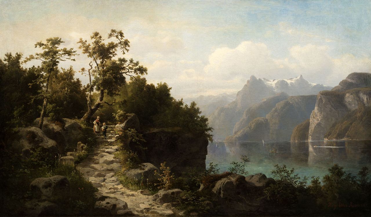 Hugo Ullik (1838–1881) Early evening on the lake Königsee